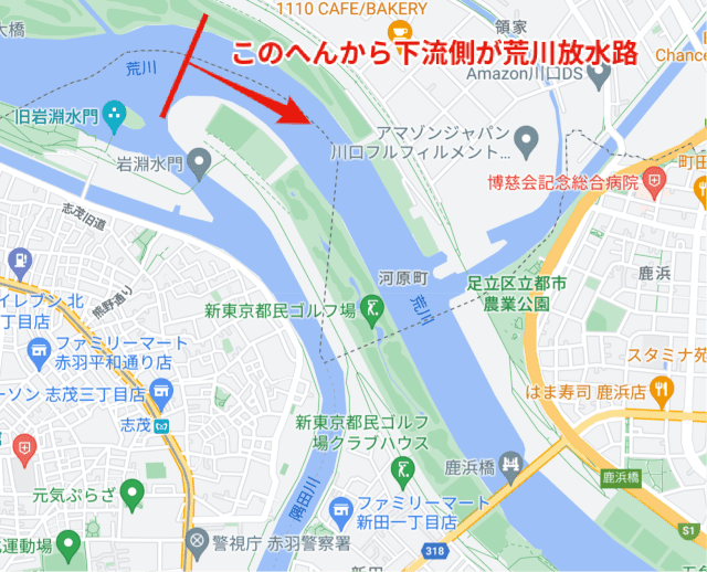 「荒川放水路」って、言葉だけは聞いたことがあったけど、そういうことやったんや。