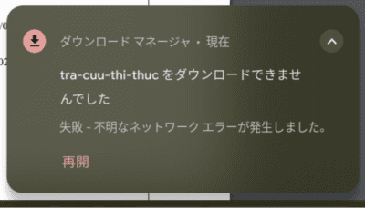 Chrome OSのせいなのか、何度ダウンロードしようとしても「失敗 - 不明なネットワーク エラーが発生しました。」と出て失敗します。