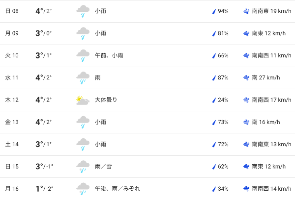 ストックホルムは年明けから最低・最高気温とも氷点下の日が続いていたんですが、今週からは最低気温すら氷点下にならない予報が連続するようになりました。