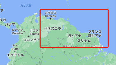 この横並びになっているベネズエラ・ガイアナ・スリナム・フランス領ギアナです。