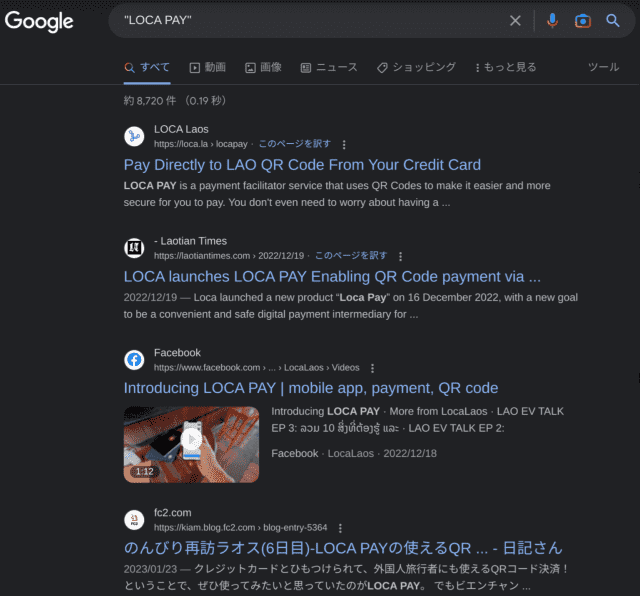 そして「“LOCA PAY”」と検索するだけで、ラオスでのLOCA PAYの日記が本家関連ページと現地ニュースの次に出てくるようになりました。こちらはSSL化後の日記。