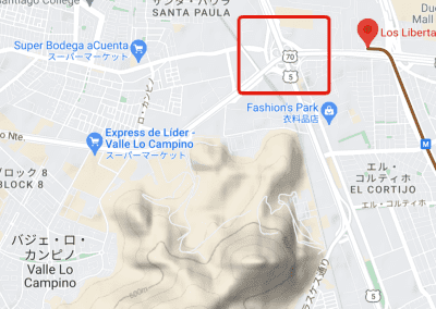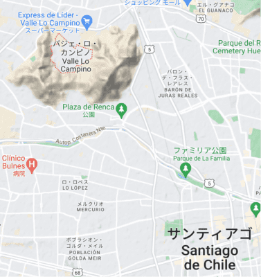 今回宿を取っているのは、サンティアゴの中心地から北西に10kmほどのバジェ・ロ・カンピノ(Valle Lo Campino)という地区です。ムーミン谷や風の谷のようなホーム感を出すために以後「カンピノ谷」と呼ぶことにします。