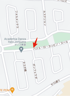 カンピノ谷には、こんな感じでループして閉じた道路のユニットがいくつも並んでいるんですが、たとえばこの矢印のような入口部分には