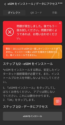 「問題が発生しました。後でもう一度お試しください。問題が続くようであれば、お問い合わせください。」