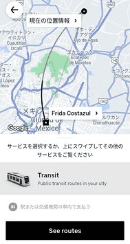 ちなみにUberで町への戻りを検索すると、配車でなく公共の交通機関を勧められます。