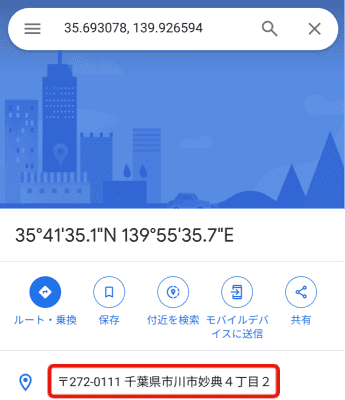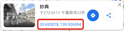 ちなみにGoogleマップで特定の位置の番地を割り出すのは、