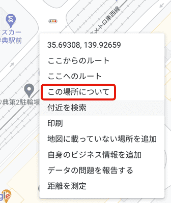 地点を右クリック > [この場所について]をクリック