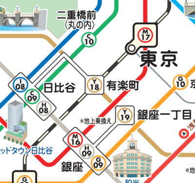 東京メトロで銀座駅を通るのは、銀座線のほかにも丸ノ内線や日比谷線があるし、丸の内に至ってはそういう駅名は丸ノ内線になく、千代田線に「二重橋前〈丸の内〉駅」があるというややこしさ。そして千代田線に千代田駅はなく、千代田区には丸ノ内線ほかいろんな路線が通っています。