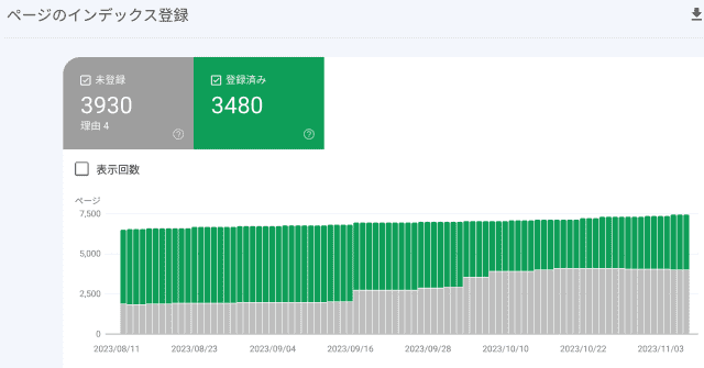 インデックス登録済みページは、Google Search Console上「前回のクロール」日の最新1000件しか表示されないので、完全には管理しきれなかったりするんですが、そういうのの対応含めこのスプレッドシートのこまごました工夫は割愛します。