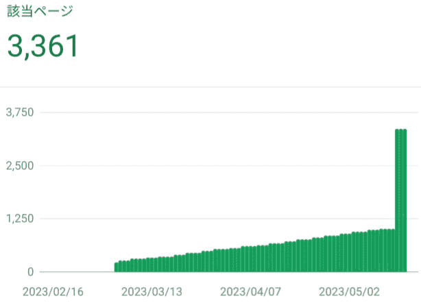 日々のリクエストとは関係なく、ある日猛烈な勢いでクローラが巡ってきて、一気に1500ページほどインデックス登録されたタイミングがありました。