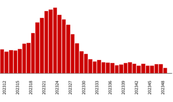 (「2023」の後ろの数字は月ではなく週。右端がちょうど今ぐらい。)