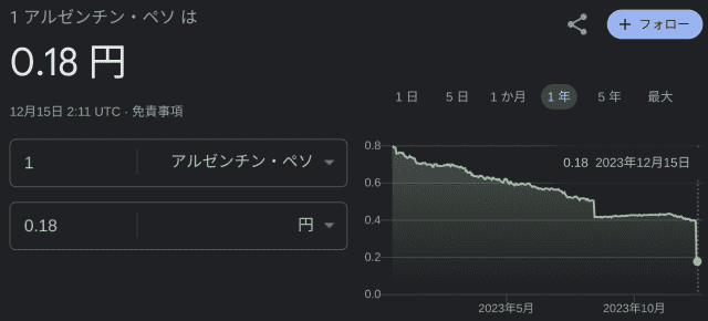 これまで左派の人が大統領をやっていたんですが、今回は極右の人が当選。アルゼンチンペソを廃止すると言っています。