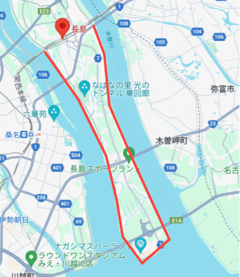 今日は桑名の直前で電車からこのルートの北の両端を目視確認。遠目やけどいけそうな路面に見えました。