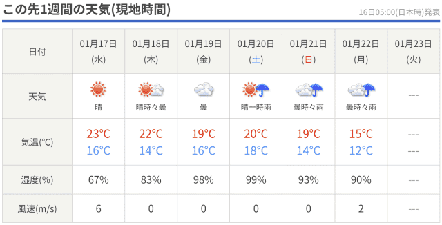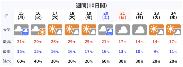 天気予報は情報源でやや意見が割れているけど、湿度が高そうなのは気になります。洗濯物乾くかな?