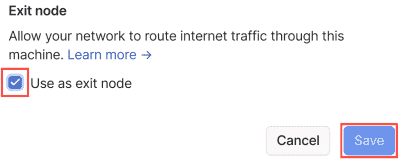 “Use as exit node"にチェックを入れて、“Save"をクリックします。