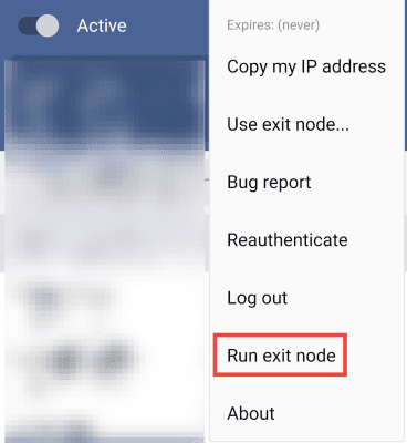 Tailscaleアプリのメニューから”Run exit node”を選択します。