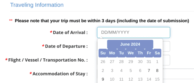 Please note that your trip must be within 3 days (including the date of submission)