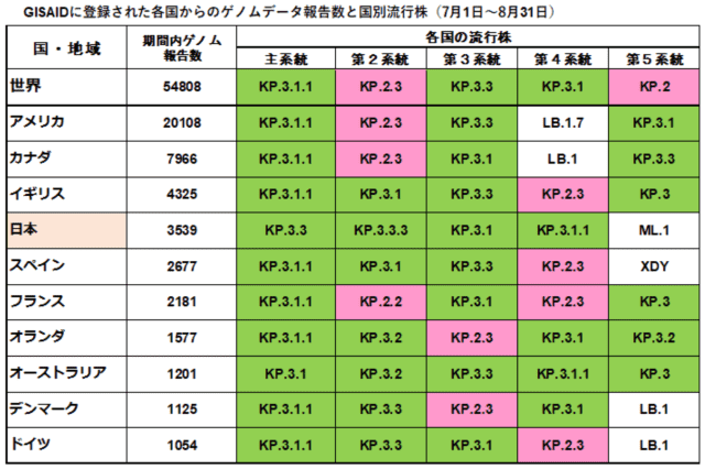 変異株については、世界の主流はKP.3.1.1。日本だけKP.3.3という新バージョン(?)が流行ってます。