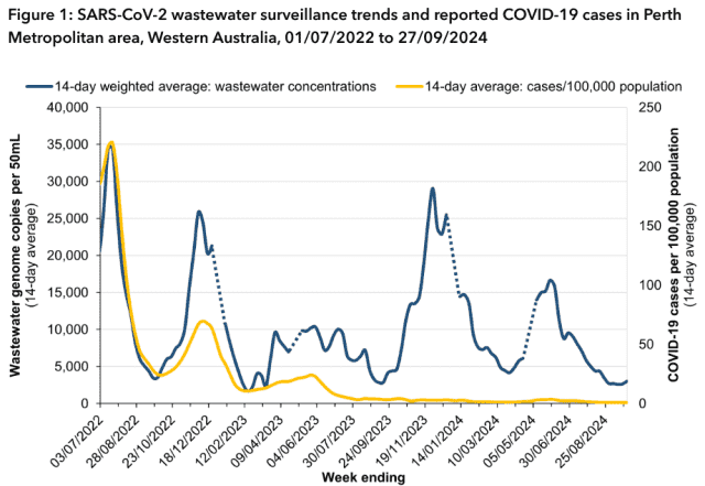 西オーストラリアは落ち着いていて、下水にピークがあっても病院にかかる人が増えてないのは日本と同じ。季節は反対やけど。