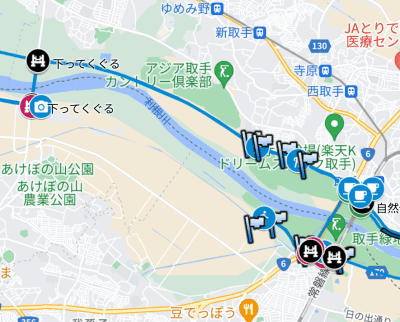 インラインスケートルートマップとしては徒歩区間の線すら引いていませんでした。両側の橋の近くから砂利道が始まっていたし、この間5km以上あるし。