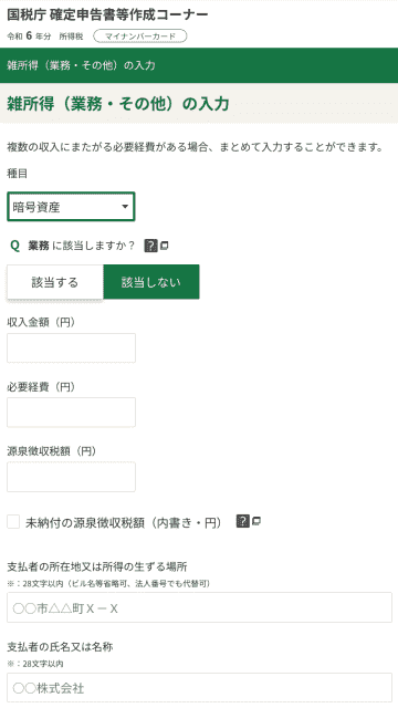 「その他の収入がある方」から「雑所得(業務・その他)」の入力ができて、