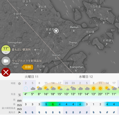 緯度的には屋久島と奄美大島の間ぐらいの宁波にも今寒波が来ていて、明日は最低気温-6℃・最高気温0℃の予報。