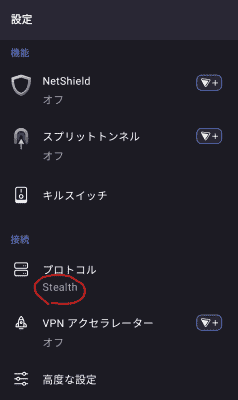 AndroidのProton VPNでも、プロトコルをStealthにすると金盾越えができました。