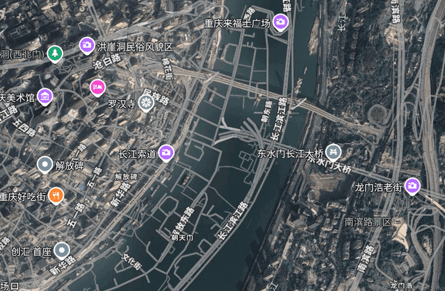 で、今日重庆あたりをGoogleマップで見ていて気づいたんですが、そもそも地図と航空写真がずれてるんです。この前調べたのと同じ「南東に500mほど」というずれからすると、たぶん航空写真は正しい座標になっていそうです。