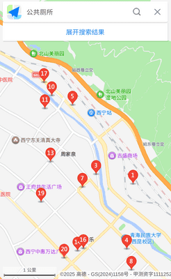 高德地图でも「公共厕所」として登録されています。