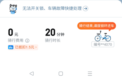 骑行结束,请拨锁环还车