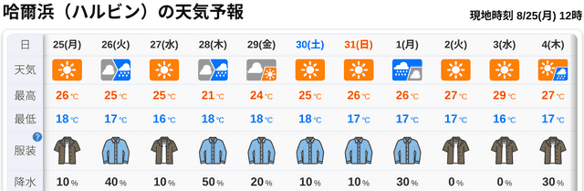 7月の避暑ルート検討のときには、哈尔滨は高緯度なのに意外と暑くて対象からはずれていたんですが、
