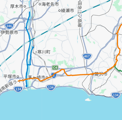 関西と関東をつなぐだけなら、神奈川県の海ぞいを歩くことに意味はないんですが、町並みの移り変わりを連続的に見られるのはおもしろいです。