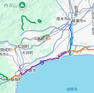 紫線のところ。もう遠いので千葉の家には帰らず、小田原駅から富士駅まで電車移動して宿を取りました。